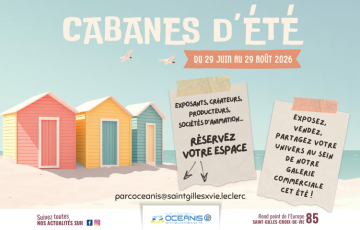 Évènements Galerie Océanis - Le Centre Exposez aux « Cabanes d’Été » 2026 à Saint-Gilles-Croix-de-Vie ! 3 avril 2026