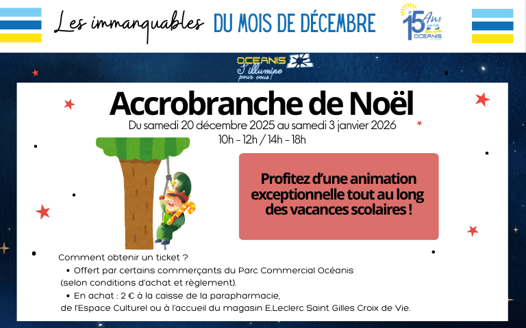 Actualités Chéquier de Noël 2025 mercredi 17 décembre, 2025 Évènements, Galerie Océanis - Le Centre Accrobranche de Noël mercredi 17 décembre, 2025 Évènements, Galerie Océanis - Le Centre Animations De Décembre mercredi 26 novembre, 2025 Évènements Marché De Noël mercredi 26 novembre, 2025 Évènements, Galerie Océanis - Le Centre Marché des Créateurs jeudi 20 novembre, 2025 Évènements, Galerie Océanis - Le Centre Cabane d’Été et Marché de Noël 2025 mardi 6 mai, 2025 Évènements, Galerie Océanis - Le Centre