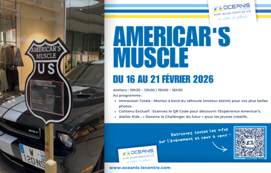 Du 16 au 21 février 2026, la Galerie Océanis de Saint-Gilles-Croix-de-Vie se transforme en temple de la culture automobile américaine avec l’événement Americar’s Muscle.
