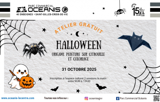 Préparez-vous pour la fête la plus effrayante de l’année ! La Galerie Océanis Le Centre invite tous les enfants à participer à un Atelier GRATUIT Spécial Halloween le vendredi 31 octobre 2025.